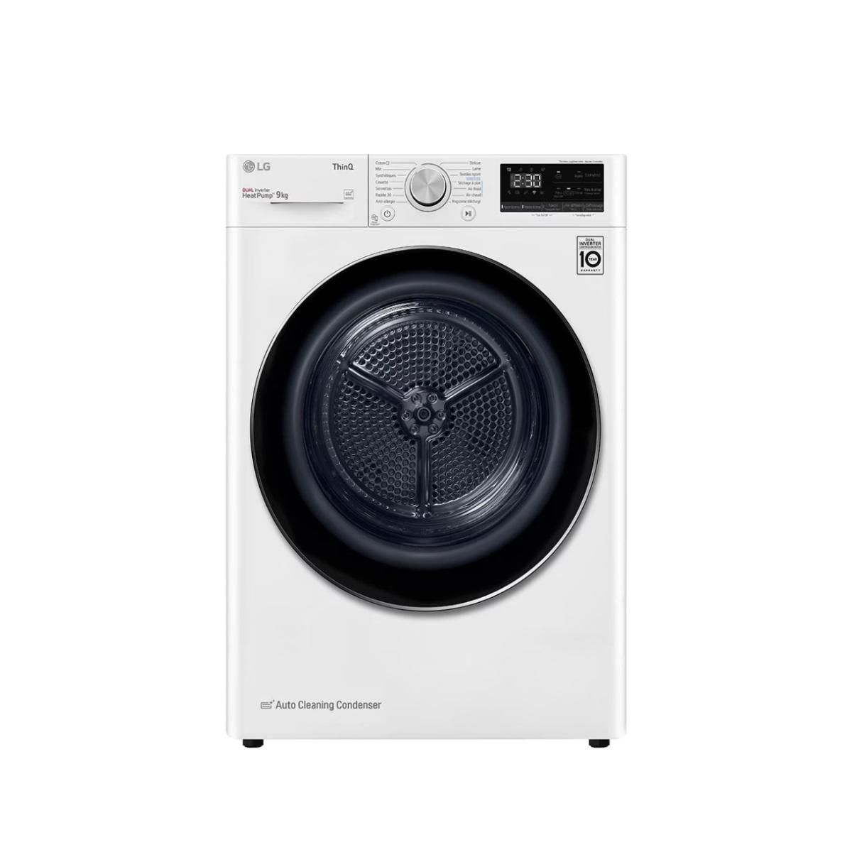Le sèche-linge frontal LG RH9V50WH blanc avec hublot verre trempé, est doté d'une grande capacité de 9 kg, il est idéal pour sécher beaucoup de linge ou de gros textiles, de la technologie Pompe à chaleur qui permet à ce produit de bénéficier de la alte énergétique A++ et donc réaliser des économies, d'un Moteur Inverter avec Compresseur Dual Inverter, de la connectivité WiFi. La porte est réversible, à vous de choisir le sens d'ouverture.
