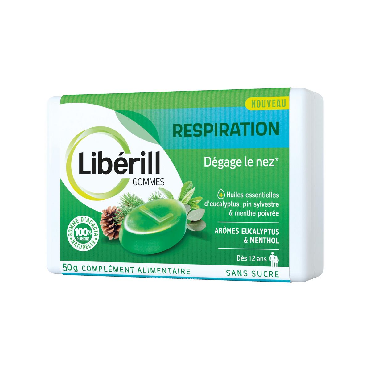 Libérill gommes respiration est un complément alimentaire à base d'huiles essentielles de plantes sans sucre et avec édulcorants qui aide à dégager les voies respiratoires et faciliter la respiration en cas d’encombrement. Le pin aide à dégager le nez et à respirer plus librement.