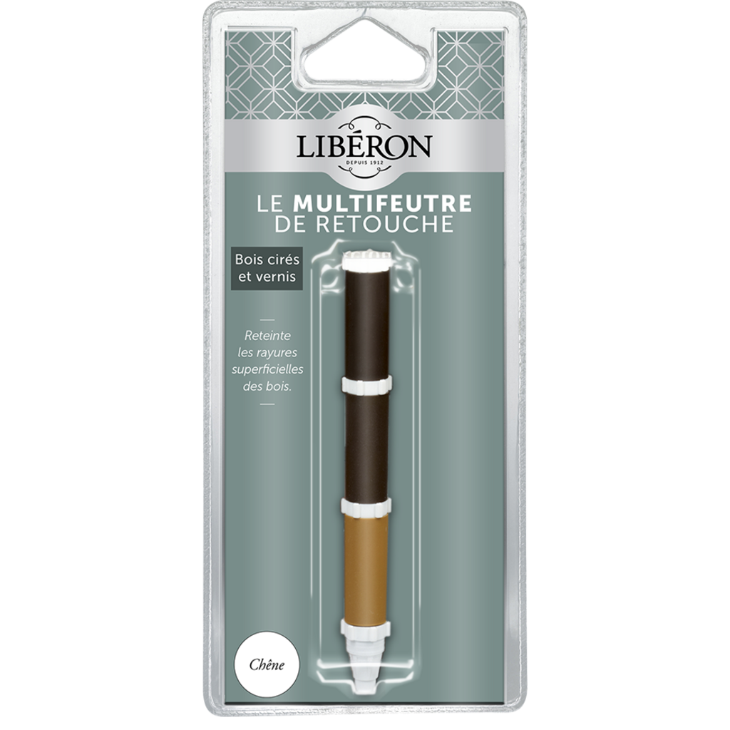 Le Multifeutre de retouche Libéron est le produit idéal pour recolorer les éraflures superficielles de vos meubles et boiseries ! Grâce à ces 3 nuances de couleurs, vous obtiendrez une teinte au plus proche de celle de votre meuble. Pratique et polyvalent, vous pouvez l'utiliser sur bois cirés ou dé