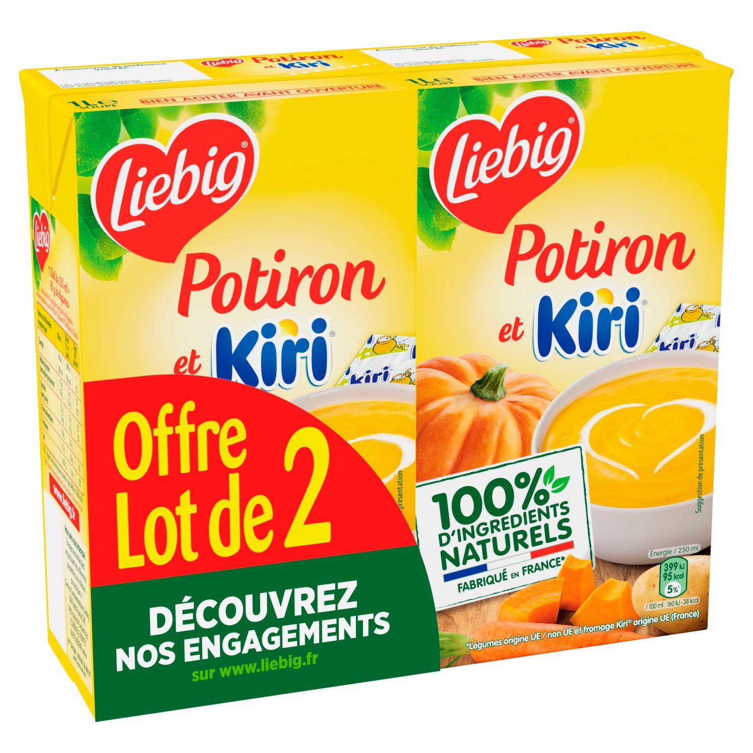 On ne dîne plus on soupe ! Simple et Gourmand : 1 bol de Potiron et Kiri® + 1 Croque-Monsieur Cette recette Liebig est : ✓ Sans conservateur** ✓ Sans colorant ** conformément à la réglementation Pour les petits et grands gourmands, nos chefs vous ont concocté une recette à base de potiron doux et sucré et de fromage Kiri® pour plus d'onctuosité. 1 produit* acheté = 1 soupe offerte** pour les restaurants du cœur Les Relais du cœur * 1 produit = 1 lot de deux ** Liebig s'engage à offrir 60 000€ ainsi que des soupes dans la limite de 60 000 litres. Cette recette Liebig est fabriquée dans notre usine près d'Avignon en Provence. Nos équipes locales s'engagent à vous proposer des produits de qualité élaborés avec des légumes cueillis à maturité et cultivés en plein champ.