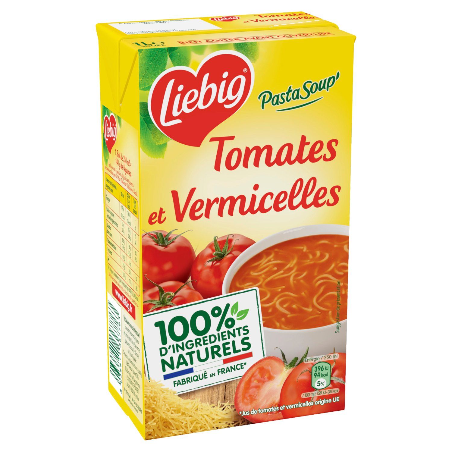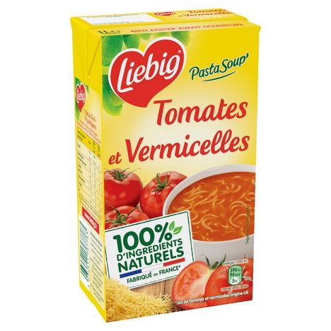 Faites vous plaisir avec les Pastasoup' Liebig. Des soupes réconfortantes pour les petits et les grands. Ces potages à la texture veloutée sont cuisinés avec amour dans notre usine en France (Légumes origine UE et non-UE) depuis 1962 avec 100% d'ingrédients naturels. Nos légumes sont sélectionnés avec soin et cueillis à maturité par nos producteurs. Pour garantir leur conservation sans aucun ajout de conservateur², nos soupes sont chauffées à haute température avant d'être mises en brique. Notre équipe qualité contrôle quotidiennement nos soupes afin de garantir les meilleurs produits. Retrouvez ces soupes en brique familiale 1L. ²Comme toutes les soupes du rayon ambiant Liebig est l'inventeur de la soupe en brique, emballage qui permet de préserver la qualité des légumes pendant plusieurs mois sans ajout de conservateur. Cette recette Liebig est fabriquée dans notre usine près d'Avignon en Provence. Nos équipes locales s'engagent à vous proposer des produits de qualité élaborés aves des légumes cultivés avec soin et récoltés à maturité. Pour plus d'informations sur notre histoire ou nos recettes, rendez-vous sur www.liebig.fr