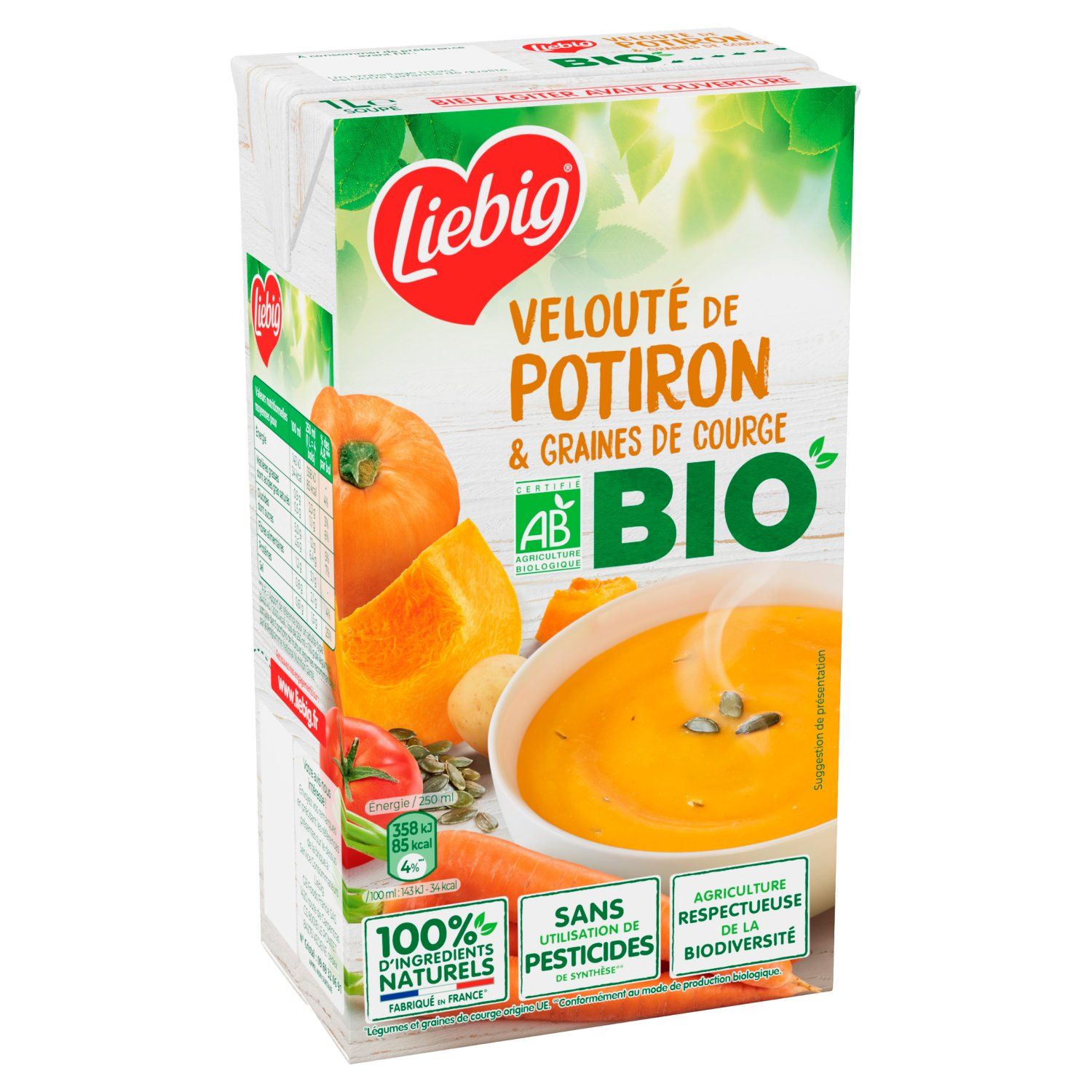 Faites vous plaisir avec les soupes Liebig BIO. Ces potages sont cuisinés avec 100% d'ingrédients naturels, sans utilisation de pesticides de synthèse et selon une agriculture respectueuse de la biodiversité. Velouté ou mouliné, ces potages sont cuisinées avec amour dans notre usine en France (Légumes origine UE) depuis 1962 avec 100% d'ingrédients naturels. Nos légumes sont sélectionnés avec soin et cueillis à maturité par nos producteurs. Pour garantir leur conservation sans aucun ajout de conservateur², nos soupes sont chauffées à haute température avant d'être mises en brique. Notre équipe qualité contrôle quotidiennement nos soupes afin de garantir les meilleurs produits. Retrouvez ces soupes en briques familiale 1L. ²Comme toutes les soupes du rayon ambiant Liebig est l'inventeur de la soupe en brique, emballage qui permet de préserver la qualité des légumes pendant plusieurs mois sans ajout de conservateur. Cette recette Liebig est fabriquée dans notre usine près d'Avignon en Provence. Nos équipes locales s'engagent à vous proposer des produits de qualité élaborés aves des légumes cultivés avec soin et récoltés à maturité. Pour plus d'informations sur notre histoire ou nos recettes, rendez-vous sur www.liebig.fr