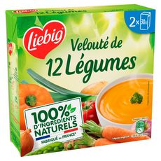 Petites briques de soupes liebig velouté au 12 légumes excellentes. Rapport qualité prix intéressant