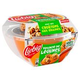 La soupe dans ce bol est pratique, mais elle est trop chère car elle n'a plus de goût que les autres soupes Liebig, de plus les croûtons aux graines sont vraiment pas bons, pourtant j'aime de nombreux produits aux graines mais ceux là ne sont pas réussis.