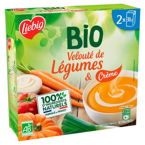 Faites vous plaisir avec les soupes Liebig BIO. Ces potages sont cuisinés avec 100% d'ingrédients naturels, sans utilisation de pesticides de synthèse et selon une agriculture respectueuse de la biodiversité. Velouté ou mouliné, ces potages sont cuisinées avec amour dans notre usine en France (Légumes origine UE) depuis 1962 avec 100% d'ingrédients naturels. Nos légumes sont sélectionnés avec soin et cueillis à maturité par nos producteurs. Pour garantir leur conservation sans aucun ajout de conservateur², nos soupes sont chauffées à haute température avant d'être mises en brique. Notre équipe qualité contrôle quotidiennement nos soupes afin de garantir les meilleurs produits. Retrouvez ces soupes en briques individuelles 2x30cl. ²Comme toutes les soupes du rayon ambiant Qualité Garantie Nos légumes sont sélectionnés avec soin et cueillis à maturité. Depuis 1962, nous les cuisinons dans notre usine en France*. Riches de 30 ans de savoir-faire, nous les cuisinons avec amour dans notre usine. Pour garantir leur conservation sans aucun ajout de conservateur, nos soupes sont chauffées à haute température avant d'être mises en brique. Notre équipe qualité contrôle quotidiennement nos soupes afin de garantir les meilleurs produits. *Légumes et crème origine UE.