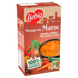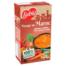 Faites-vous plaisir et voyagez avec les soupes Liebig exotiques. Des recettes pleines de goûts et d'épices inspirées de la cuisine du monde. Ces potages à la texture veloutée, avec ou sans morceaux, sont cuisinés avec amour dans notre usine en France (Légumes origine UE et non-UE) avec 100% d'ingrédients naturels. Nos légumes sont sélectionnés avec soin et cueillis à maturité par nos producteurs. Pour garantir leur conservation sans aucun ajout de conservateur², nos soupes sont chauffées à haute température avant d'être mises en brique. Notre équipe qualité contrôle quotidiennement nos soupes afin de garantir les meilleurs produits. Retrouvez ces soupes en brique familiale 1L. ²Comme toutes les soupes du rayon ambiant Liebig est l'inventeur de la soupe en brique, emballage qui permet de préserver la qualité des légumes pendant plusieurs mois sans ajout de conservateur. Nos équipes s'engagent à vous proposer des produits de qualité élaborés avec des légumes cultivés avec soin et récoltés à maturité. Pour plus d'informations sur notre histoire ou nos recettes, rendez-vous sur www.liebig.fr