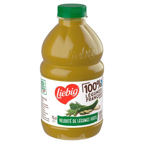 Ce délicieux Velouté de Légumes Verts a été élaboré par nos chefs cuisiniers dans notre atelier en Provence. Comme à la maison, ils ont retiré tout le superflu pour ne garder que le meilleur des légumes 100% Origine France. Des recettes 100% légumes français, sans colorant, sans conservateur*, sans exhausteur de goût et source de Fibres. Et comme Liebig® ne s'arrête pas là, découvrez ces nouvelles soupes pour la première fois en bouteilles transparentes et refermables ! Ouvrez, Versez, Chauffez, Dégustez et Refermez ! Il y a beaucoup d'amour chez Liebig®, et ça se ressent dans nos soupes ! *Conformément à la réglementation Velouté de Légumes Verts