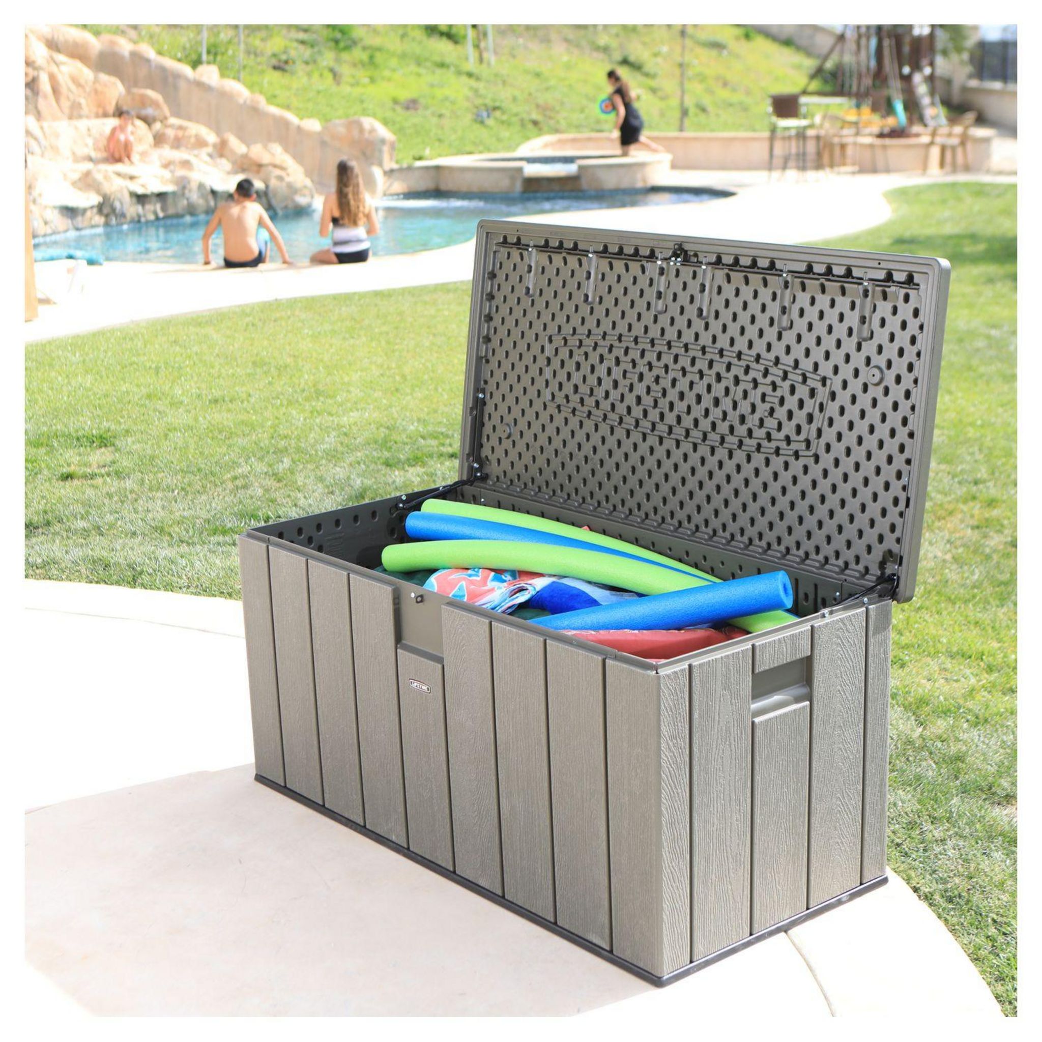 - Couvercle à charnière à ressort contrôlé et verrouillable, - Construction rigide en polyéthylène haute densité (PEHD), - La texture Rough Cut ™ a l'aspect et le toucher naturels du bois sans l'entretien (peinture ou teinture), - Les panneaux, le couvercle et les charnières en acier sont conçus pour résister aux intempéries, - Poignées moulées pour un déplacement facilité, - Couvercle conçu pour s'ouvrir à plus de 90°, - Matériaux de construction : quincaillerie en acier, parois en polyéthylène haute densité résistant aux intempéries, - Garantie : 5 ans