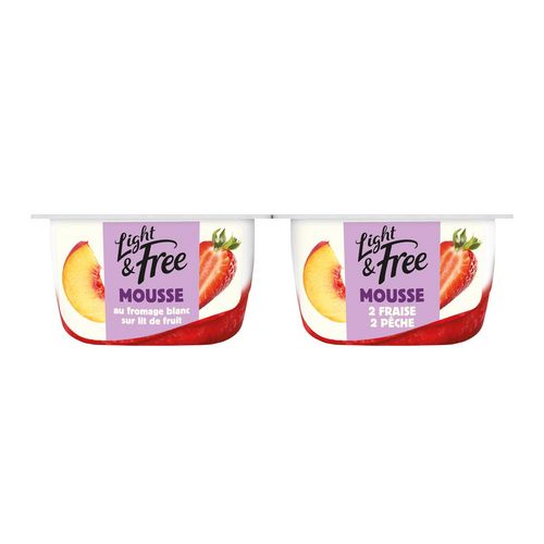 Light&Free mousse au fromage blanc sur lit de fraise et pêche est 0% de matières grasses, source de calcium et vitamine D. Cette mousse a une texture aérée et gourmande, le tout sublimé par son lit de fruits. Un fromage blanc idéal pour un dessert gourmand et léger ! Taillefine est devenu Light&Free !