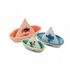 Trois petits bateaux flottants en Néoprène, Orange, Bleu et Vert, joliment illustrés sur le thème de la jungle, qui flottent pour amuser votre enfant dans la baignoire à l'heure du bain. Et qui sécheront vite sans risque de moisissure.