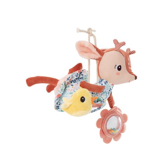 Stella le faon, accroché au siège-bébé, s'active joyeusement au-dessus de bébé. Stella joue avec les sons, le toucher et les reflets? de quoi intriguer votre bout de chou ! Stella, la copine de voyage, se détache facilement pour devenir une peluche. Composition: Polyester, coton. Dimensions: 20 x 7.5 x 25 cm