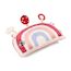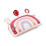 En route vers la forêt magique de Lena ! Ce tendre coussin d'activités en forme d'arc-en-ciel accompagne bébé dans ses premières découvertes : des textures variées, des sons amusants, des nuances de couleurs.. C'est l'idéal pour stimuler sa motricité et éveiller tous ses sens. Lena la licorne, gardienne de la forêt enchantée, a traversé l'arc-en-ciel pour rejoindre son univers féerique. Elle invite bébé à embarquer pour un voyage plein de douceur et de surprises !Allongé sur le ventre, bébé s'installe confortablement et comme à explorer ce coussin avec ses petites mains curieuses. Il découvre des matières différentes qui éveillent son toucher. En manipulant le coussin, il s'amuse avec le hochet à billes colorées : il observe les billes danser et écoute leur doux bruit. Mais qui voilà ? C'est Lena, prête à saluer bébé et à éveiller sa curiosité ! Plus loin, sa copine la coccinelle attend bébé avec un hochet tout doux à secouer pour entendre son tintement délicat. Puis, un joli nuage attire son attention : en le froissant, bébé découvre le bruit amusant du papier qui crépite sous ses doigts. Et pour apaiser ses gencives, il saisit l'anneau de dentition à relief, parfait pour masser et soulager les petites dents qui poussent. Les étiquettes colorées complètent l'aventure en invitant bébé à explorer encore plus avec ses doigts. Chaque activité stimule ses sens, sa curiosité et renforce sa tonicité musculaire ! Dans ses dimensions 7 x 36 x 23 cm, ce jouet d'éveil transforme ce moment sur le ventre en un temps de jeu magique et plein de découvertes. Prêts à rejoindre Lena dans sa forêt enchantée ?