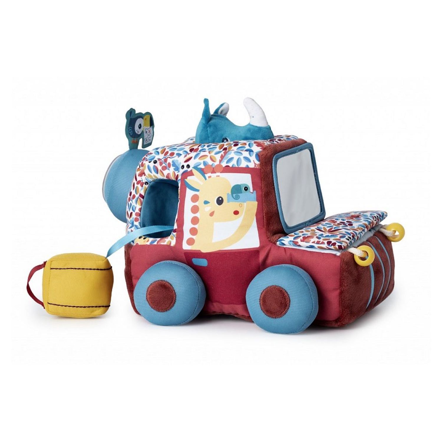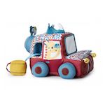 Une voiture en tissus plein de surprises pour les tous petits: cachette, hochet, miroirs