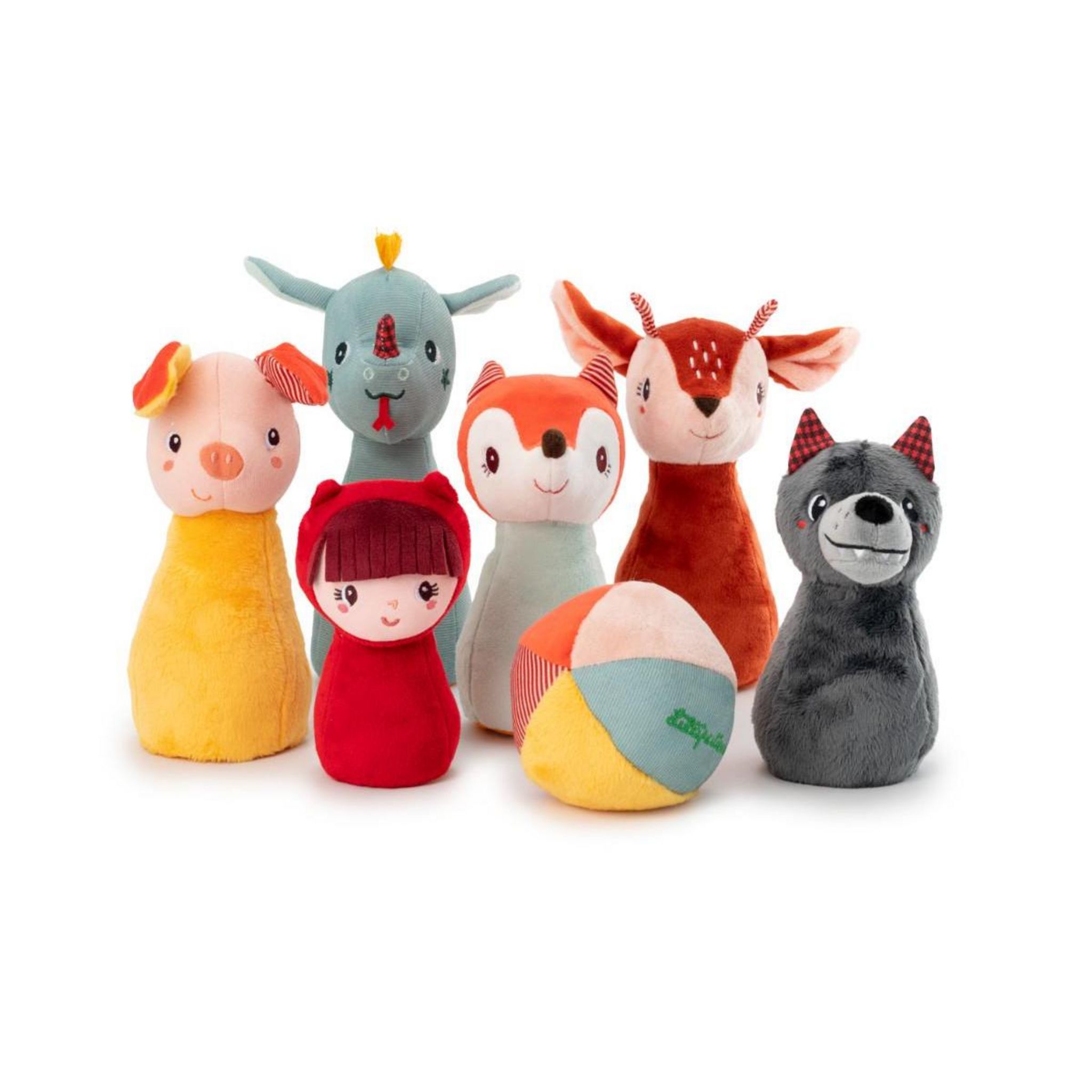 Ce jeu de quilles en tissu à l'effigie de vos personnages préférés réjouira votre bambin. Il est fourni avec une balle hochet stimulante pour les sens de bébé. Des quilles douces et colorées que votre enfant s'empressera de vouloir renverser au cours de parties endiablées. Ces quilles sont composées