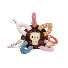 Place à la découverte au c?ur du jardin avec Léon le hérisson ! Adaptée aux bébés dès la naissance, cette balle d'activités en tissu permet d'éveiller les sens en douceur. Chacun des 5 anneaux propose une sensation différente, et d'autres extensions permettent de stimuler aussi bien la vue que le toucher et l'ouïe. Ce jouet d'éveil sensoriel se présente sous la forme d'un hérisson tout duveteux, qui prend plaisir à se cacher dans le jardin. Pour découvrir tous les secrets de son environnement, il faut être curieux et ne pas hésiter à saisir ce qui se présente à nous ! Pour cela, la taille du jouet en tissu ainsi que celle des anneaux ont été spécialement conçue pour les petites mains. Bébé saisit sa balle d'activités, et découvre le tintement d'un hochet, un crissement ? Pour stimuler le toucher, rien de tel que des broderies, des imprimés et des matières variées : tout doux, rainuré, ou encore du bois, des étiquettes et des rubans. La palette de couleurs utilisées et les contrastes sont adaptés à la vue des tout-petits. Le petit plus de ce jouet d'éveil en peluche, c'est son anneau de dentition en silicone : idéal pour soulager les gencives douloureuses de bébé grâce à ses motifs en relief. Facile à saisir, grâce à sa forme ronde et à sa multitude de poignées, ce jouet d'activité divertit votre bout de chou tout en l'aidant à développer ses sens. Dans son format 16 x 17 cm, il trouve sa place dans le coin jeu de bébé et lors de vos séances de motricité libre. On explore avec Léon !