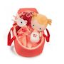 Découvrez la poupée bébé Léna de Lilliputiens, une adorable poupée de chiffon lovée dans son couffin sous sa couverture. Un poupon que votre enfant va s'amuser à promener et à câliner. L'enfant imite maman et papa en dorlotant sa poupée. Il donne le biberon qui vient se coller grâce à un aimant sur la bouche du bébé. Il peut également changer la couche de sa poupée, la déshabiller et lorsque vient l'heure de dormir, il la couche dans son couffin douillet en prenant soin de ne pas oublier son doudou! Entièrement en tissu, le couffin et la couverture sont réversibles et votre enfant adorera donner le biberon à son bébé. Un jeu d'imitation qui favorise le développement de l'empathie, du langage et de l'inventivité.
