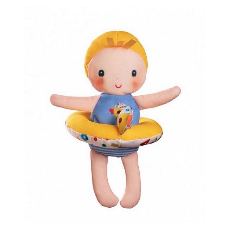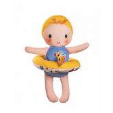 Poupée spécialement conçu pour le bain et qui flotte. Cette poupée en polyester de 18 cm rendra l'heure du bain encore plus amusante ! Autour de sa taille se trouve une bouée jaune ornée d'une tête de canard. Après le bain, la poupée peut être suspendue à la boucle prévue à cet effet pour sécher en
