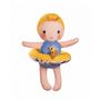 Poupée spécialement conçu pour le bain et qui flotte. Cette poupée en polyester de 18 cm rendra l'heure du bain encore plus amusante ! Autour de sa taille se trouve une bouée jaune ornée d'une tête de canard. Après le bain, la poupée peut être suspendue à la boucle prévue à cet effet pour sécher en un minimum de temps.