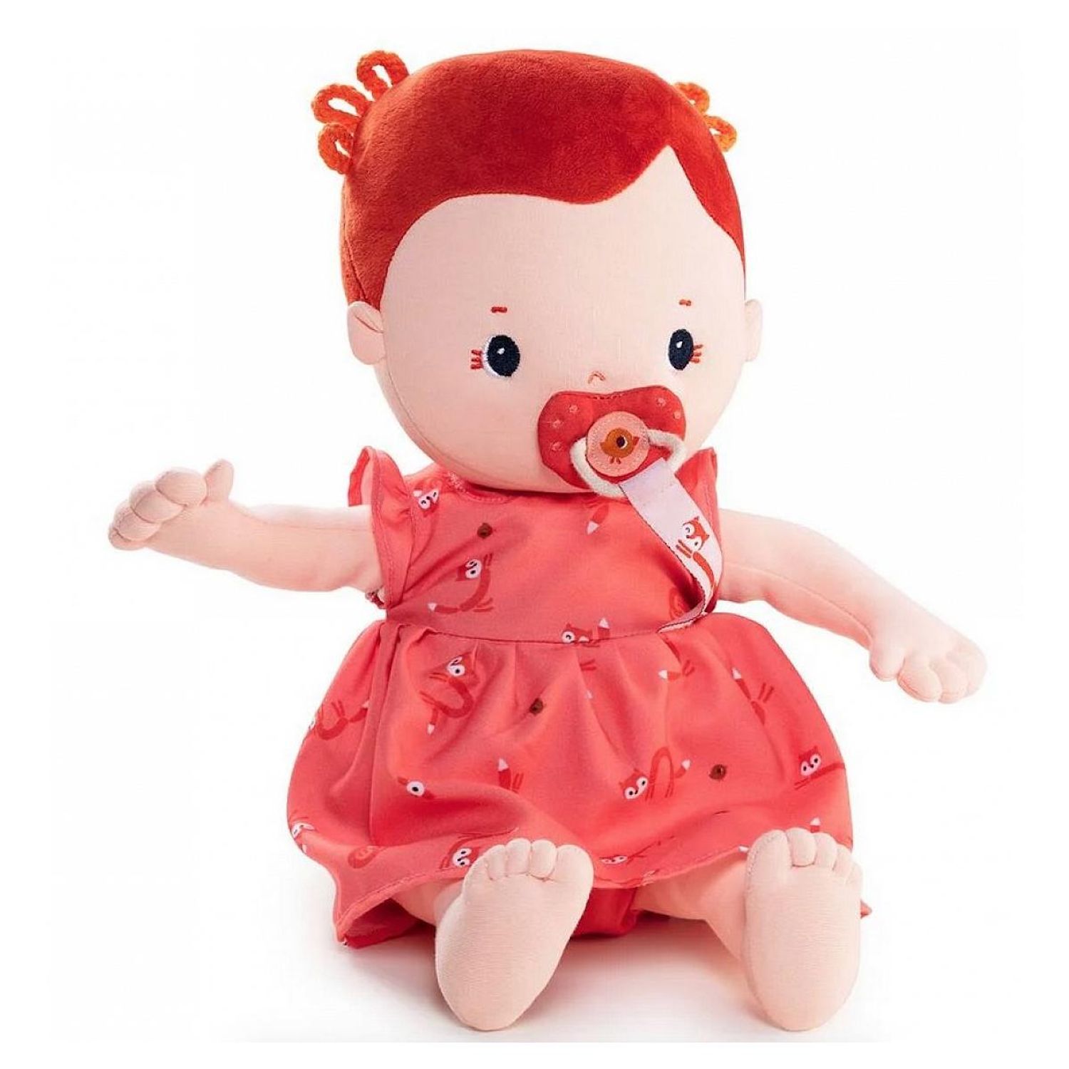 Rose est un poupon qui, comme un vrai bébé, adore les câlins. Sous sa petite robe à la mode, que vous pouvez facilement enlever et enfiler, elle porte une couche qu'il faut régulièrement changer, comme une vraie maman ou un vrai papa de poupée. Si elle a un chagrin, la tétine aimantée la consolera.