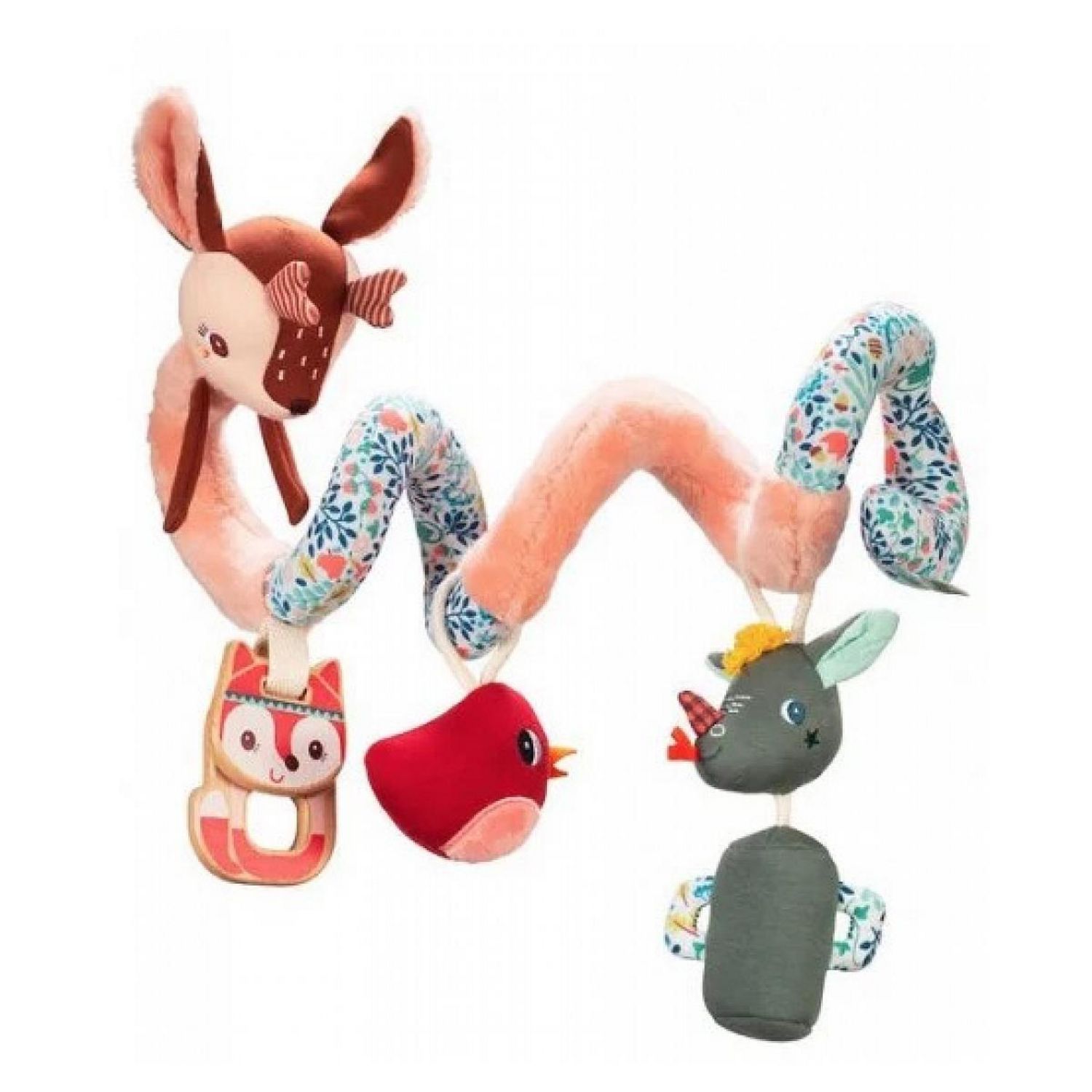 Découvrez la spirale d'activités forêt de Lilliputiens, un jouet d'éveil en tissu à accrocher sur la poussette ou sur le transat pour éveiller et divertir bébé. Des sons et des textures étonnants, des couleurs contrastantes.., cette spirale offre une multitude d'activités, conçues pour stimuler les