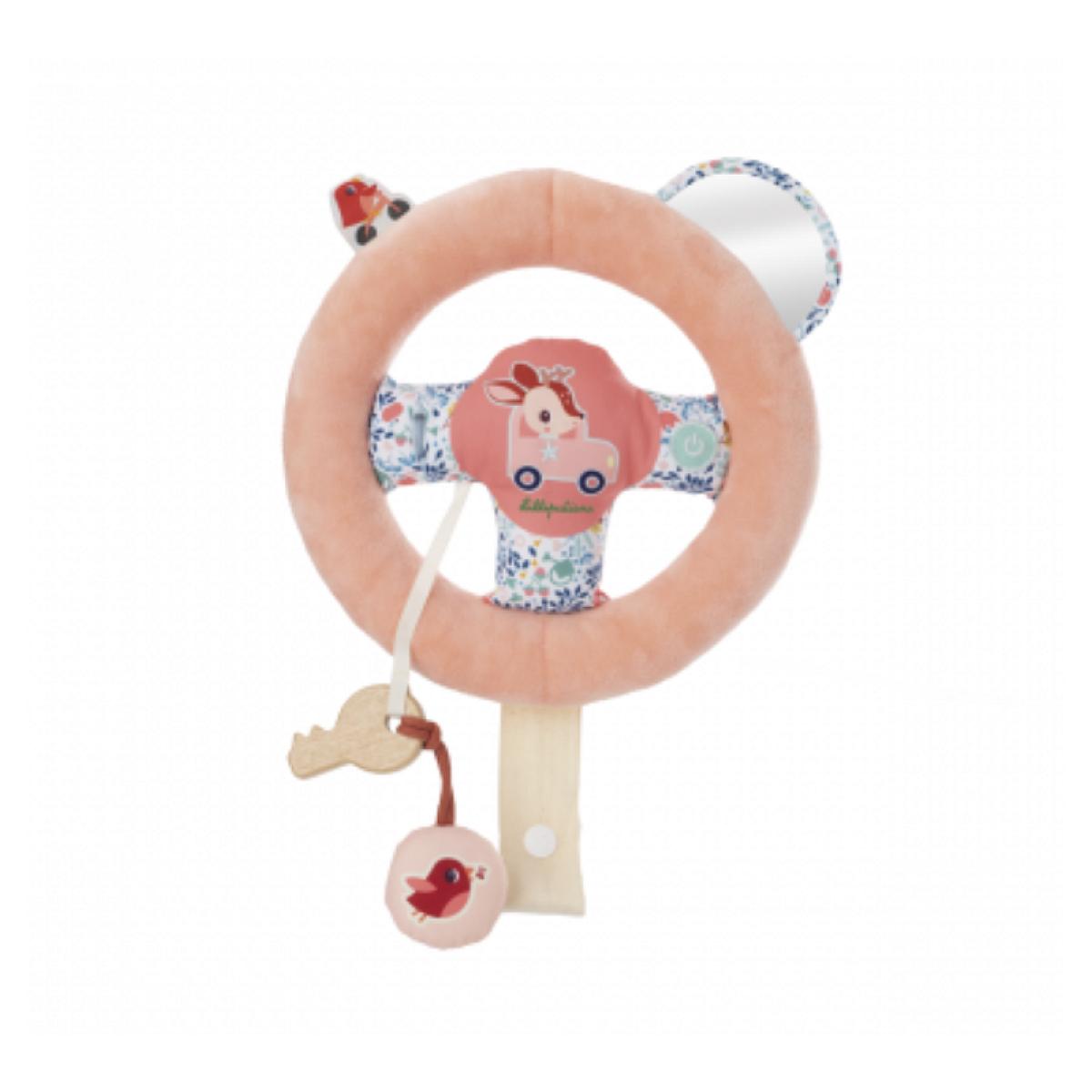 Attacher sa ceinture, prendre le volant et démarrer la voiture, c'est parti pour l'aventure ! Il ne faut pas oublier de regarder dans le rétroviseur ! Ce volant amovible qui s'attache à la ceinture du siège-voiture est parfait pour reproduire les gestes des grands, tout en stimulant l'imagination de
