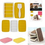 | Description | Pour des sandwichs glacés maison ! Faîtes cuire les biscuits dans les moules à silicone. Etalez la crème glacée à la spatule. Démoulez et servez les 4 sandwichs glacés. - Composition : Caoutchouc - Dimensions : 22.5x15x3cm | |