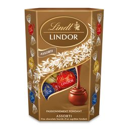 Découvrez le Cornet LINDOR Assorti, un assortiment de bouchées de chocolat au cœur incroyablement fondant. Composé de 3 recettes emblématiques : chocolat au lait, noir et blanc. Croquez sa délicate coquille, et son cœur passionnément fondant vous emporte comme dans un rêve, pour un petit moment de bonheur rien qu'à vous. Fondez de bonheur avec LINDOR, créé par les Maîtres Chocolatiers Lindt. La Passion et l'Amour pour le chocolat depuis 1845.