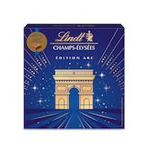 Lors des fêtes de fin d'années, offrez à vos proches la nouveauté Lindt CHAMPS-ELYSEES Edition Arc : un coffret au design très festif et original. Retrouvez une variété de 7 bouchées au chocolat blanc, lait et noir dont la bouchée Arc de Triomphe Lait, la recette Lindt CHAMPS-ELYSEES préférée des consommateurs. Découvrez également en exclusivité dans ce coffret la bouchée Arc de Triomphe Noir. Cette boîte est composée de 22 bouchées.