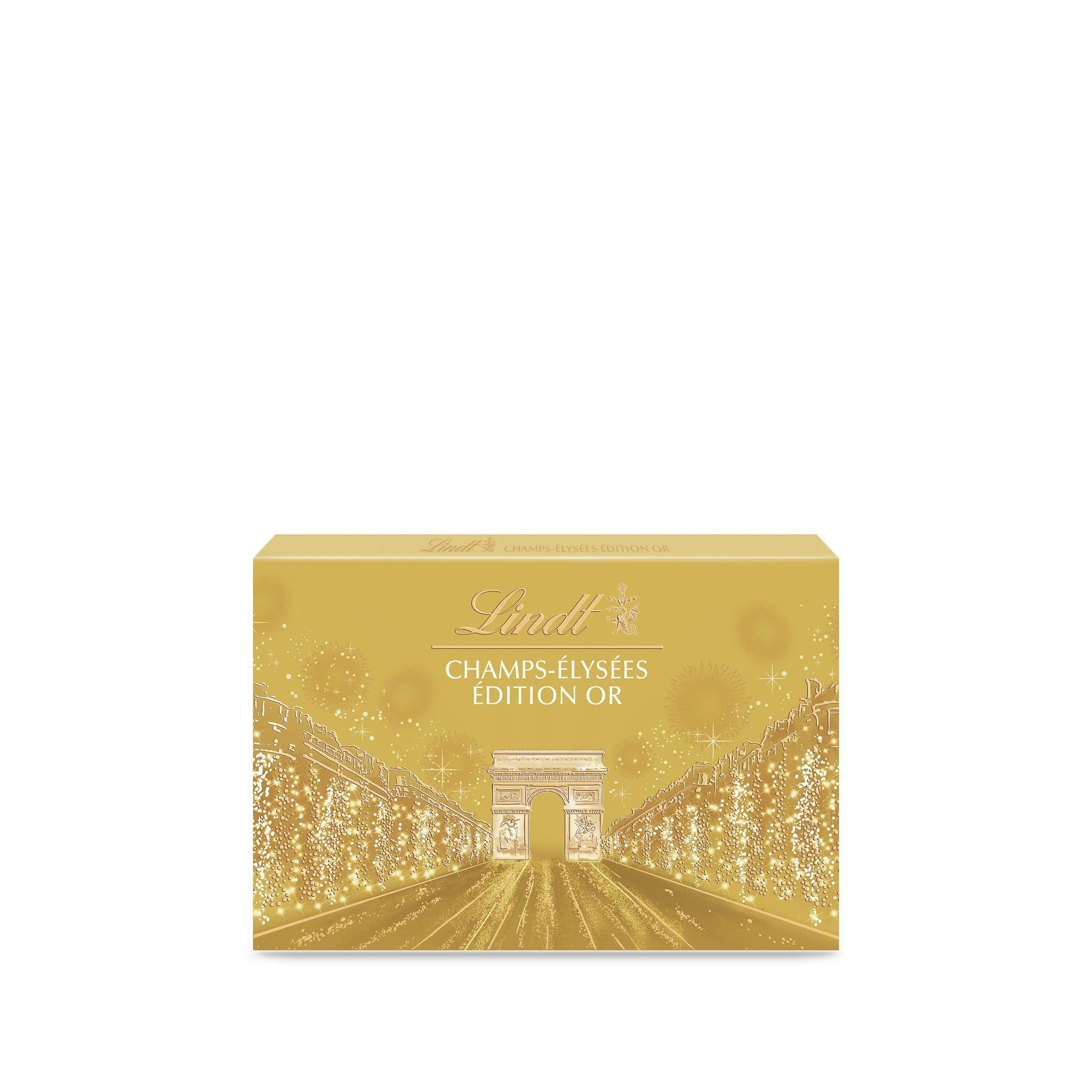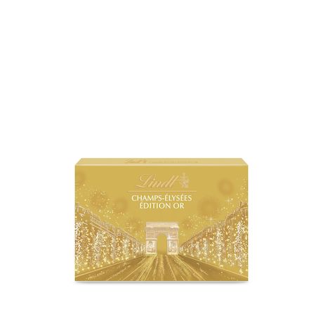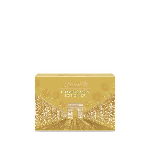 Découvrez Lindt Champs-Elysées, le plus fin des chocolats dans le plus féérique des coffrets, par les Maîtres Chocolatiers Lindt. Lindt Champs-Elysées Or, c'est le plus pétillant des assortiments pour Noël : un écrin doré, une recette de chocolat au sucre pétillant, pour des sensations inédites et pleines de surprises et un assortiment de fins chocolats au lait, noir et blanc.
