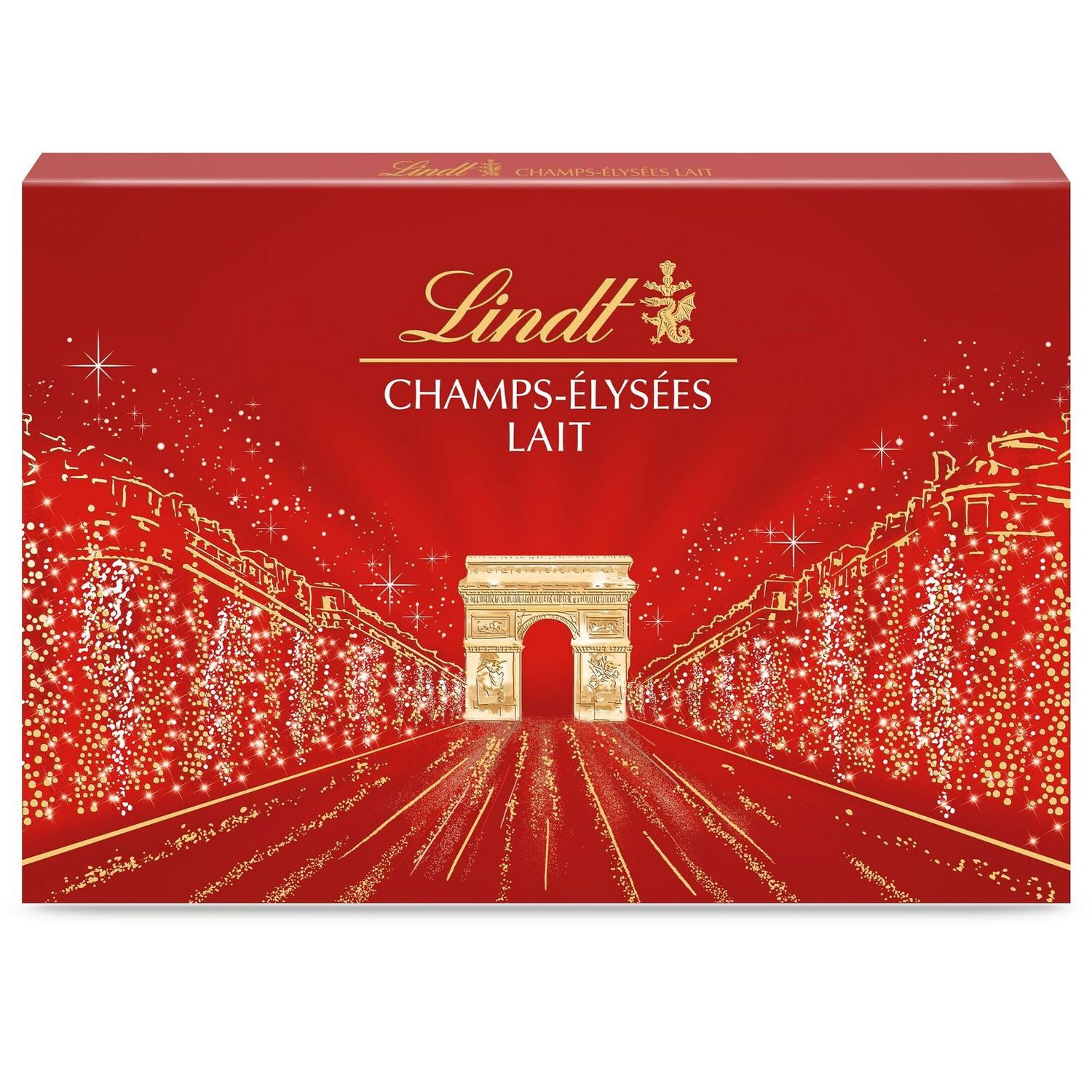 Lindt Champs-Élysées Lait, un assortiment de 44 fines bouchées pralinées Lindt au chocolat au lait.