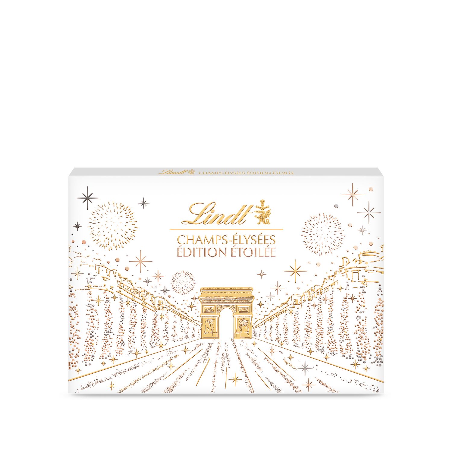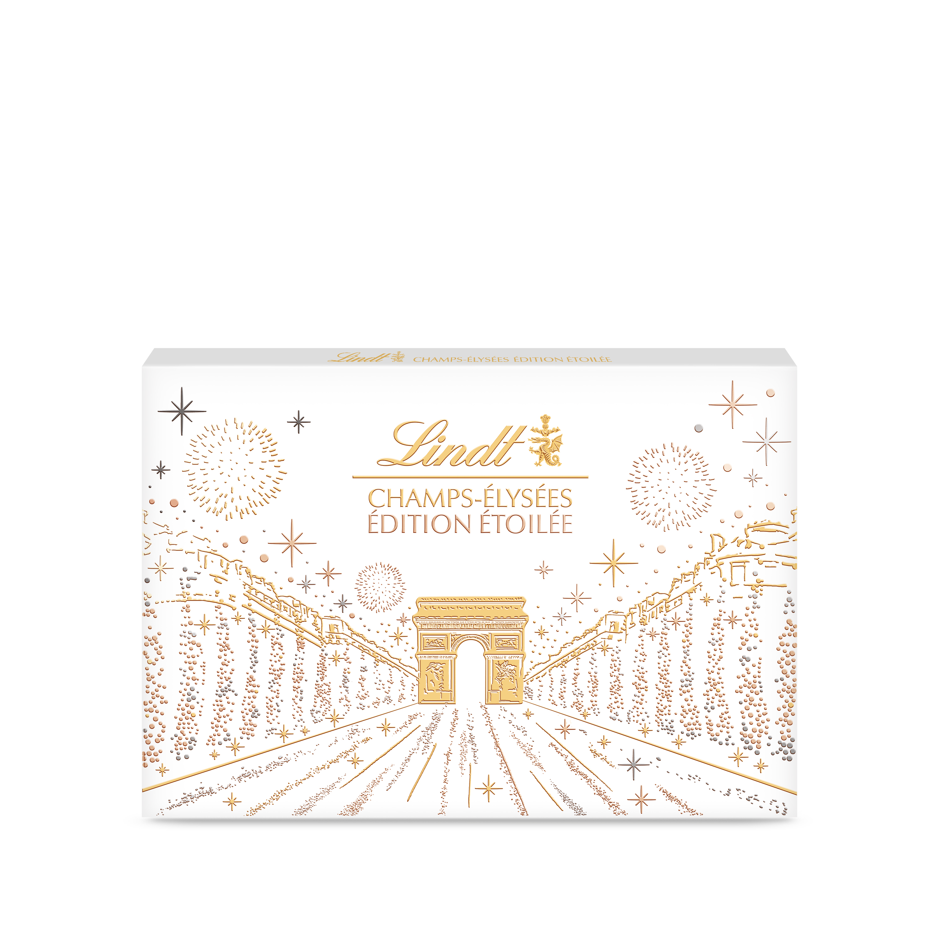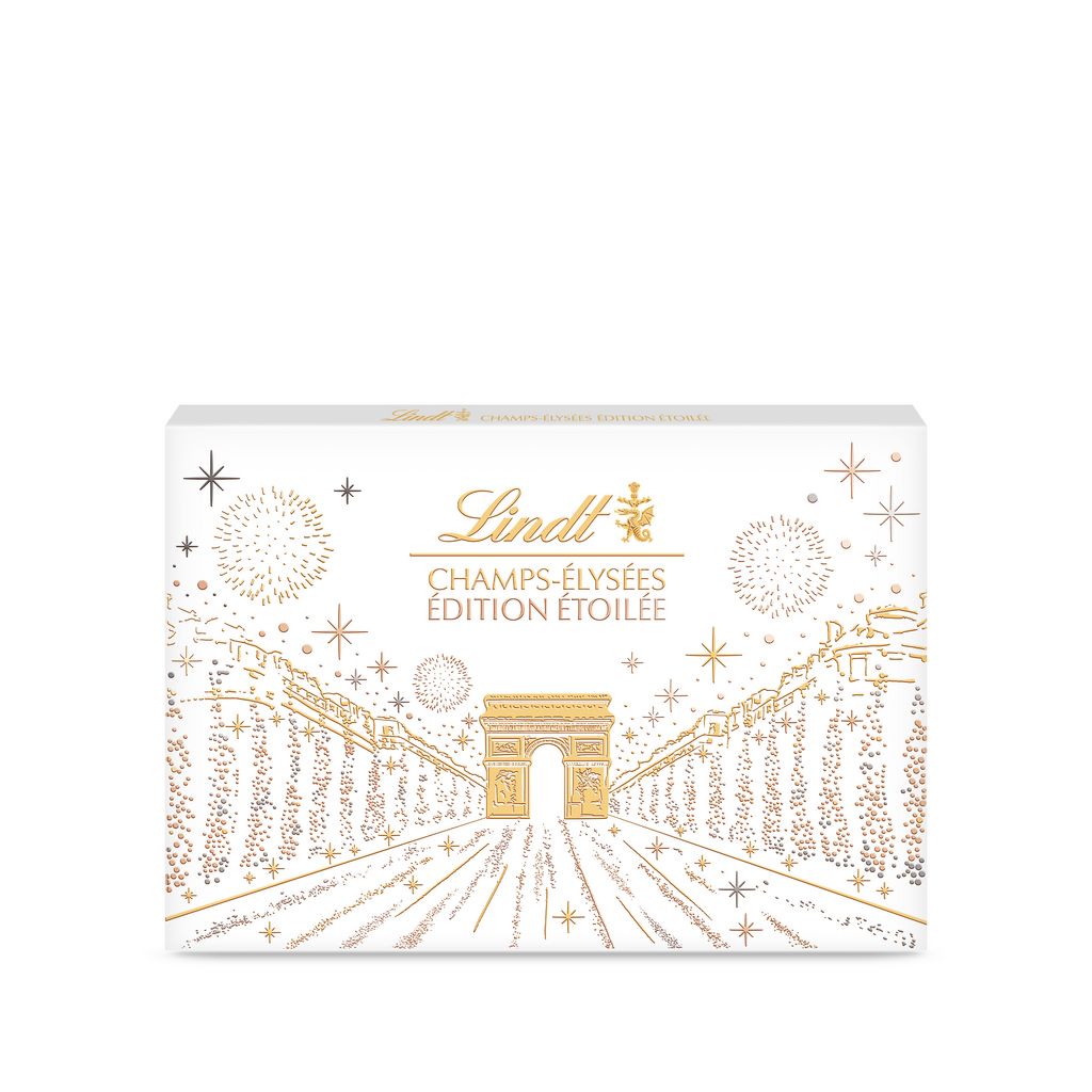 CHAMPS-ELYSEES Edition Etoilée est un design inédit et différent co-sélectionné avec les consommateurs. Cet assortiment de 44 bouchées de chocolat au lait, noir et blanc est composé de deux nouveaux bonbons : l'Arc de Triomphe lait et le Cœur Cacao Croquant.