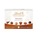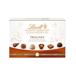 Lindt Connaisseurs Pralinés est un assortiment de fines bouchées de chocolat célébrant la saveur et l’onctuosité des meilleurs pralinés et gianduja, préparés par les Maîtres Chocolatiers Lindt dans le plus pur respect de la tradition chocolatière. Assortiment de 18 bouchées de chocolats, extra-fins traditionnels, au lait, noirs et blancs, fourrés
