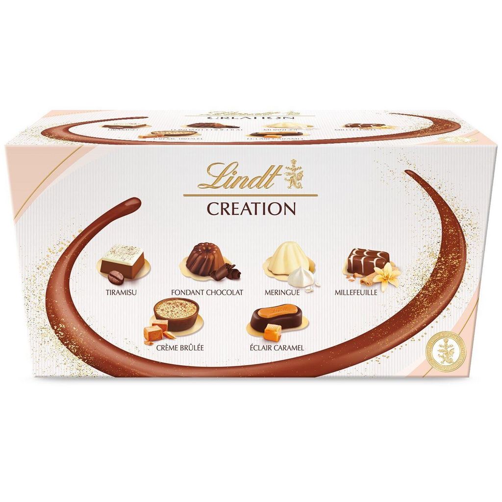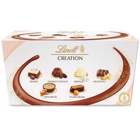 Pour offrir ou pour se faire plaisir, les Maîtres Chocolatiers Lindt ont allié passion chocolatière et inspiration pâtissière afin de créer un ballotin Création raffiné, composé de fines et irrésistibles bouchées de chocolat.