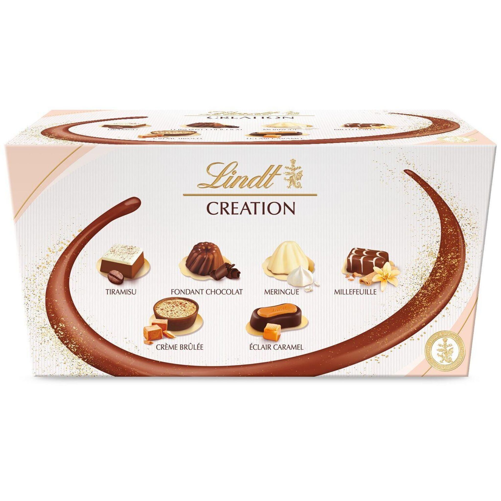 Lindt Création Dessert, un assortiment de 18 fines et irrésistibles bouchées pralinées Lindt