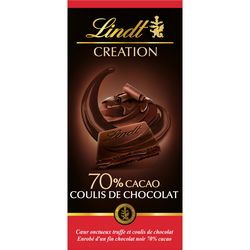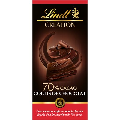 Pour quelle recette Lindt CREATION allez-vous craquer aujourd'hui ? Succombez à Lindt CREATION Noir Coulis de Chocolat : L'alliance voluptueuse d'un chocolat noir extra fin à 70% de cacao et d'un cœur de truffe très onctueux, sublimé par un irrésistible coulis au chocolat délicieusement fondant. Découvrez aussi les autres irrésistibles recettes de la collection Lindt CREATION et plongez dans un monde infini de créativité et de gourmandise.