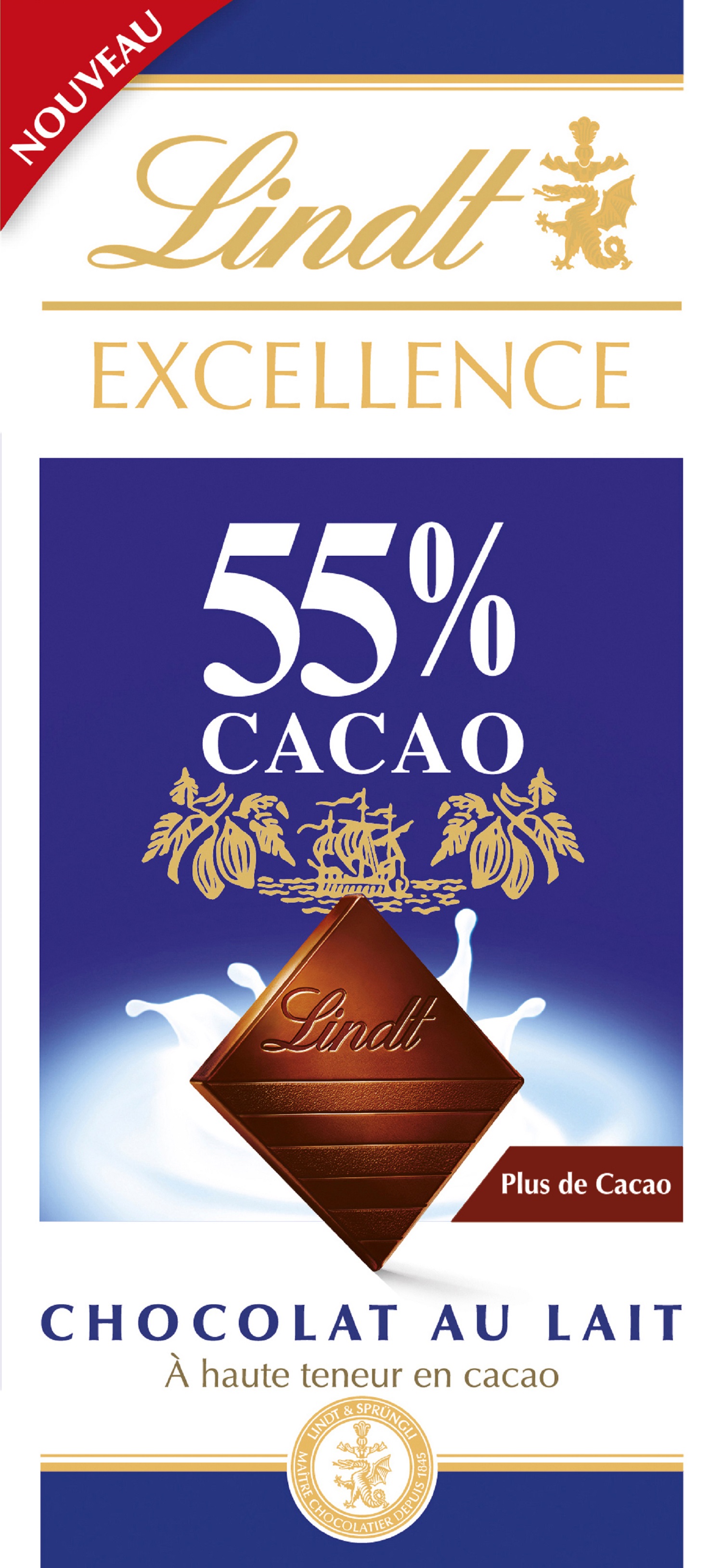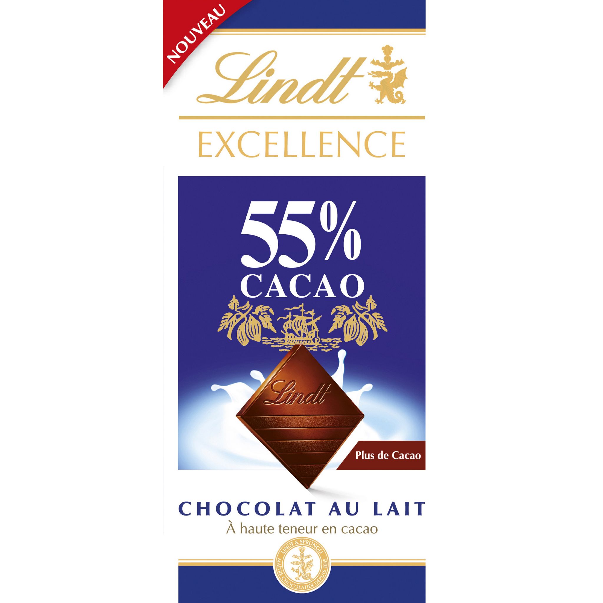 Les Maîtres Chocolatiers Lindt ont créé un nouveau chocolat au lait alliant tout le plaisir du chocolat au lait avec les avantages d'un haut taux de cacao : plus de cacao pour une longueur en bouche exceptionnelle, et toujours la douceur et le fondant du lait.