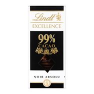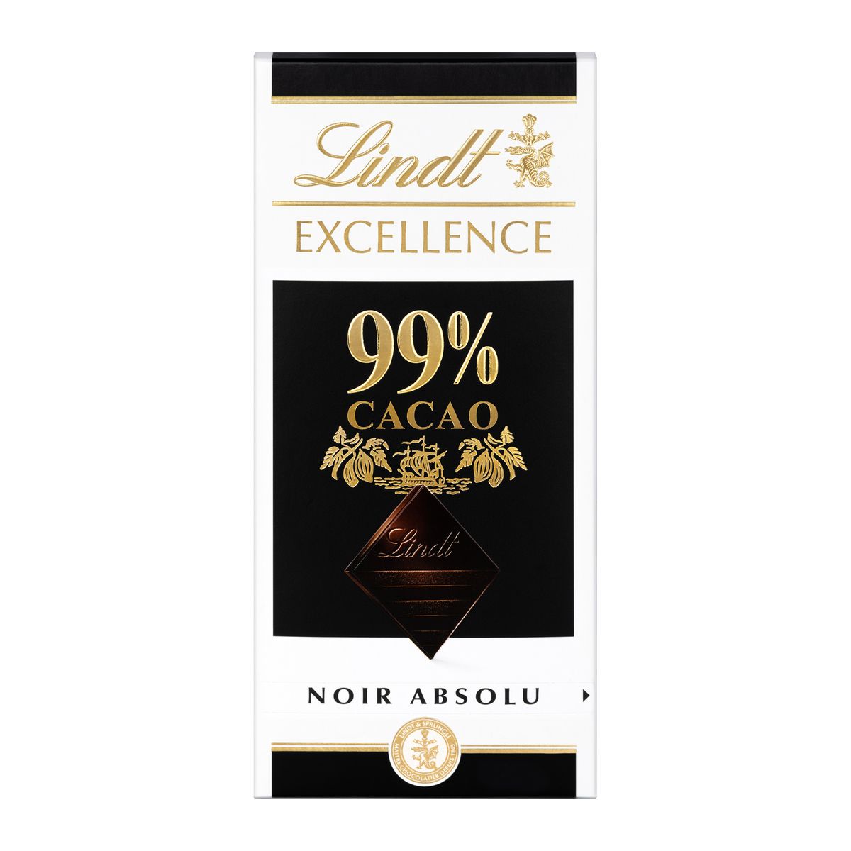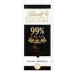 Tablette de chocolat Lindt Excellence Noir 99 % de cacao, l'intensité d'un chocolat noir premium aux puissantes notes cacaotées.