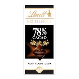 Lindt Excellence Noir, une tablette de chocolat préparée à partir des meilleurs ingrédients par nos Maîtres Chocolatiers. Avec une teneur en cacao de 78 %, ce délicieux chocolat noir révèle toute l'intensité et la qualité du chocolat Lindt et réveille vos sens. Profitez d'une texture lisse et d'une couleur profonde qui laissent place au croquant de ses carrés exceptionnellement fins. Savourez un chocolat noir extra fin qui fond sur la langue.