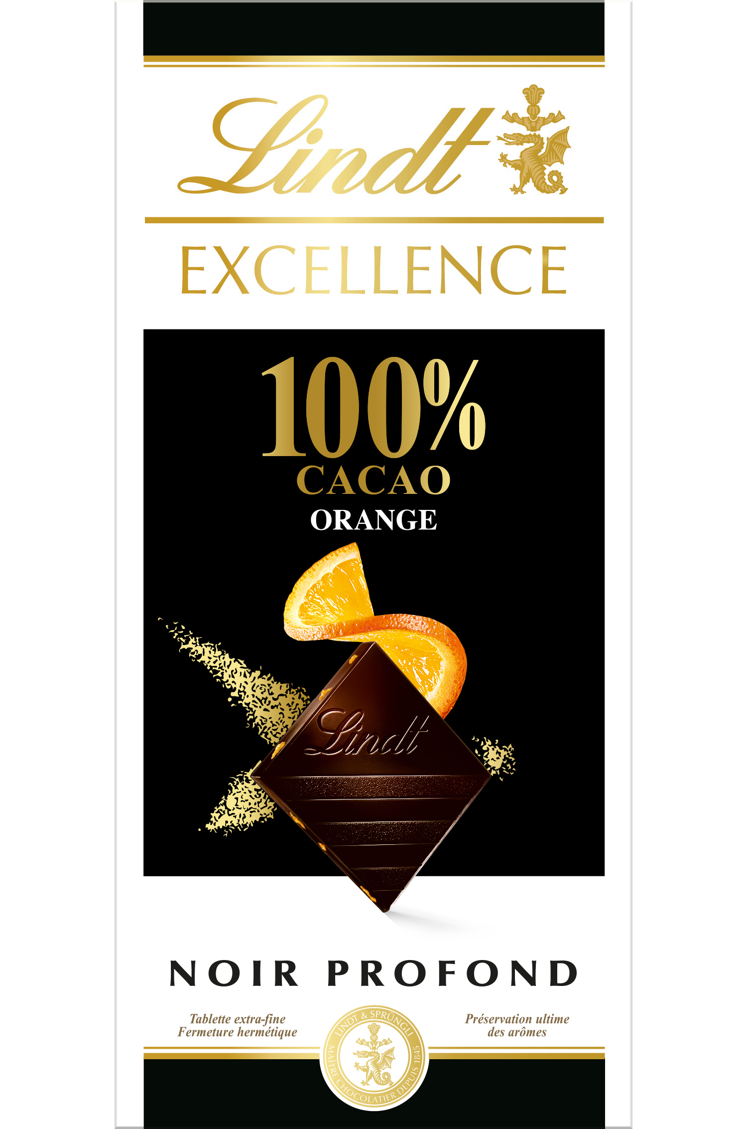 Excellence tablette de chocolat noir orange 100% cacao