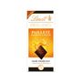 Tablette de chocolat Lindt Excellence Noir Orange Intense, l'intensité de tendres pépites à l'orange et la légère sensation craquante des amandes effilées.