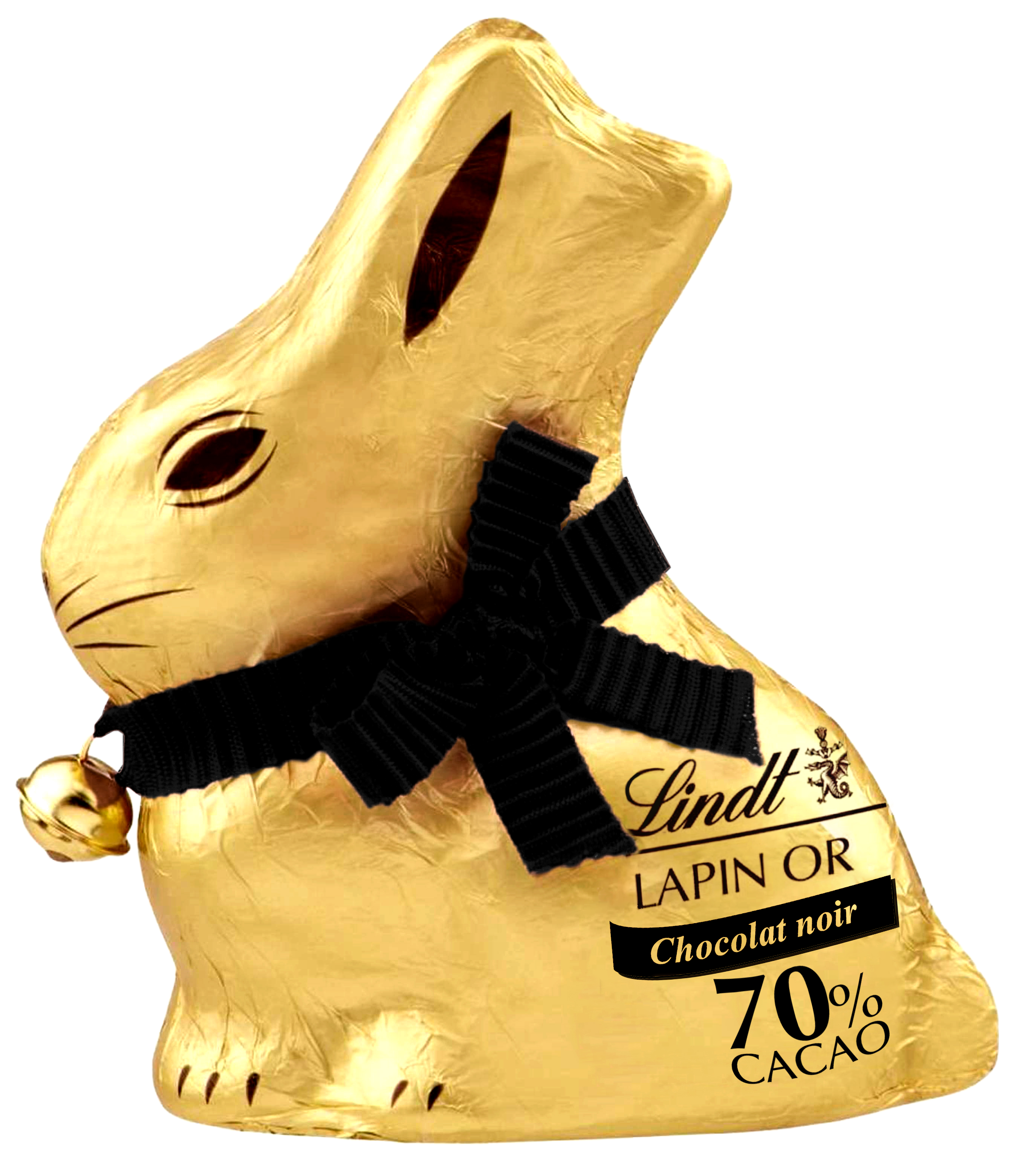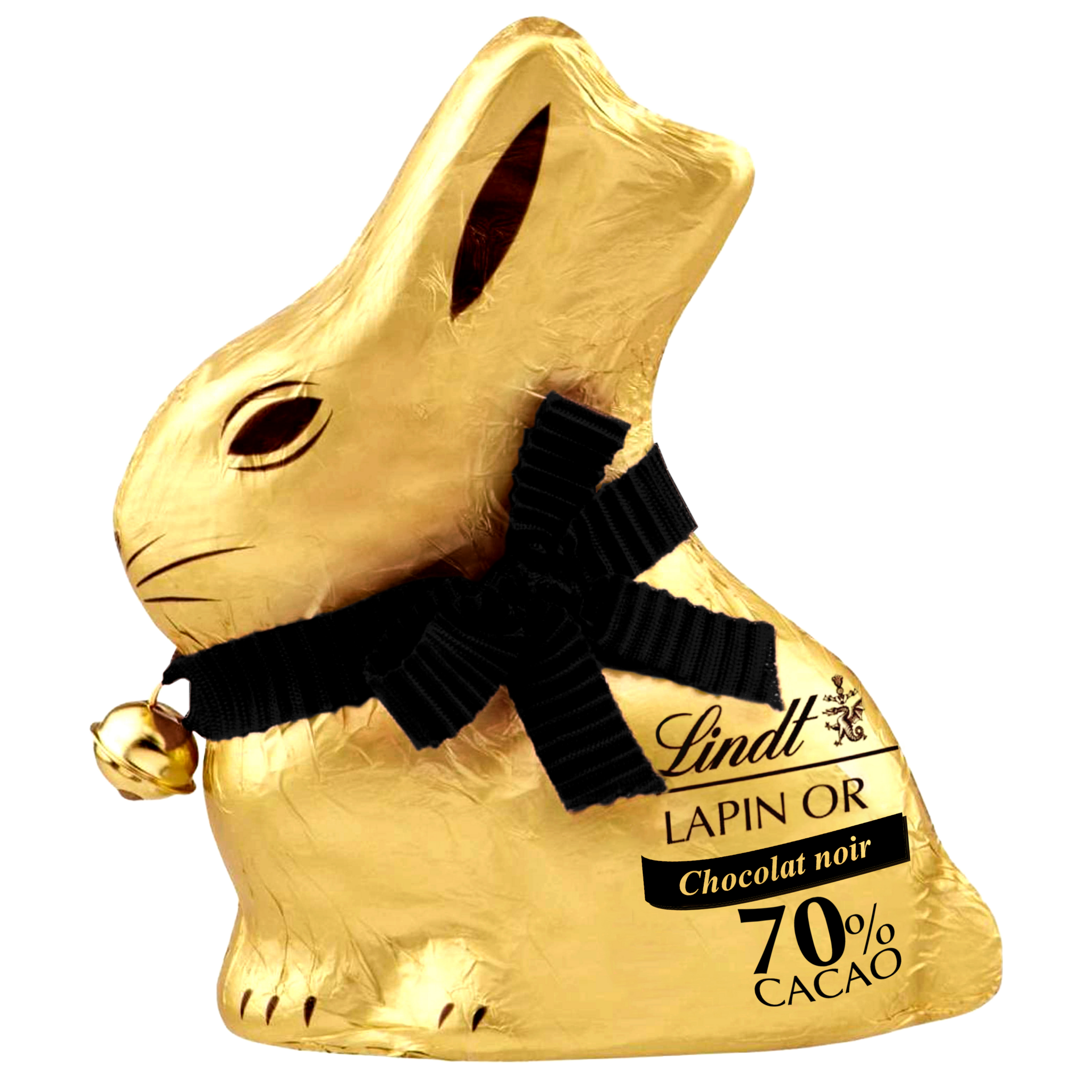 70% de cacao, ruban noir spécifique et clochette