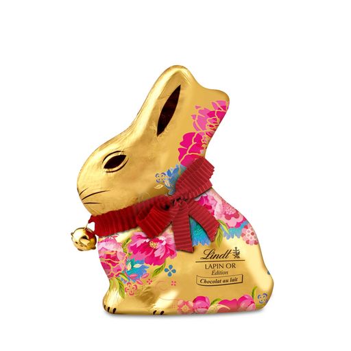 Lapin Or 200g, le moulage incontournable et iconique de Pâques, surfe sur la tendance et se pare de motifs fleuris, colorés et printaniers