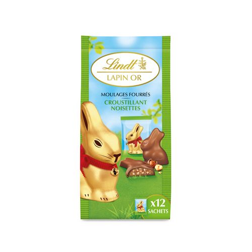 Lapin Or moulages fourrés chocolat au lait cœur croustillant noisettes sachets individuels