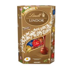 Pour les fêtes de Pâques, craquez pour LINDOR Assorti 337g, un assortiment de trois recettes LINDOR emblématiques : Lait, Noir et Blanc, dans un cornet au design festif. Le format idéal à partager, à offrir ou à ne garder rien que pour soi. Croquez sa délicate coquille, et découvrez son cœur irrésistiblement fondant, pour un moment de pur bonheur. Fondez de bonheur avec LINDOR, créé par les Maîtres Chocolatiers Lindt.