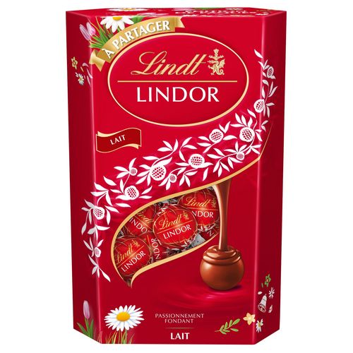 Pour les fêtes de Pâques, craquez pour LINDOR Lait 337g, la recette emblématique LINDOR dans un cornet au design festif. Le format idéal à partager, à offrir ou à ne garder rien que pour soi. Croquez sa délicate coquille, et découvrez son cœur irrésistiblement fondant, pour un moment de pur bonheur. Fondez de bonheur avec LINDOR, créé par les Maîtres Chocolatiers Lindt.