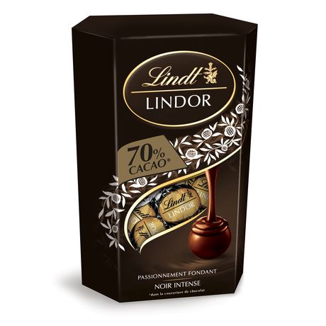 Bouchées de chocolat noir, fourrées d'un suprême fondant. Quel que soit l'endroit, quel que soit le moment, il y a quelque chose de magique dans un instant LINDOR. Croquez sa délicate coquille, et son cœur passionnément fondant vous emporte comme dans un rêve, pour un petit moment de bonheur rien qu'à vous. LINDOR, créé par les Maîtres Chocolatiers Lindt. La Passion et l'Amour pour le chocolat depuis 1845.