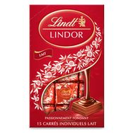 Découvrez les Carrés de dégustation LINDOR Lait, la recette emblématique LINDOR chocolat au lait passionnément fondant. Quel que soit l'endroit, quel que soit le moment, il y a quelque chose de magique dans un instant LINDOR. Croquez sa délicate coquille, et son cœur passionnément fondant vous emporte comme dans un rêve, pour un petit moment de bonheur rien qu'à vous. Fondez de bonheur avec LINDOR, créé par les Maîtres Chocolatiers Lindt. La Passion et l'Amour pour le chocolat depuis 1845.