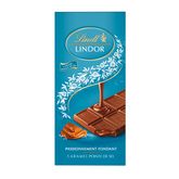 Découvrez la tablette LINDOR Caramel Pointe de Sel : un cœur au caramel passionnément fondant à la pointe de sel, enrobé d'une délicate coquille de chocolat au lait.