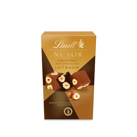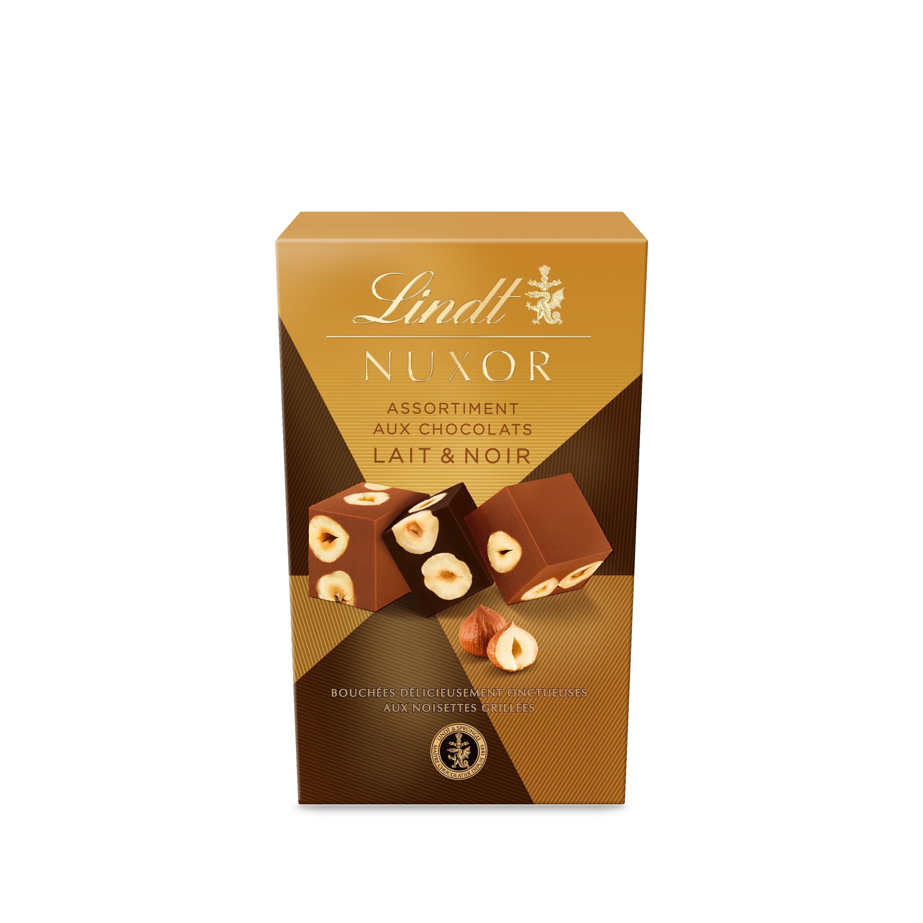 Découvrez la plus incroyable des expériences chocolatées Lindt aux noisettes ! NUXOR Lait et Noir, c'est une parfaite combinaison de textures grâce à des ingrédients de haute qualité : l'onctuosité d'un gianduja chocolat au lait et d'un chocolat noir et le croquant des délicates noisettes grillées, soigneusement sélectionnés par les Maîtres Chocolatiers Lindt. Une forme cubique unique, emballée délicatement dans un élégant papier doré, pour offrir ou pour se faire plaisir !