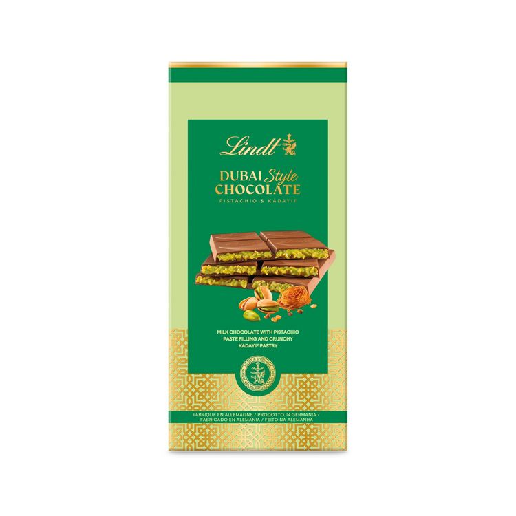 Tablette de chocolat au lait Dubaï fourrée à la pistache et aux cheveux d'ange